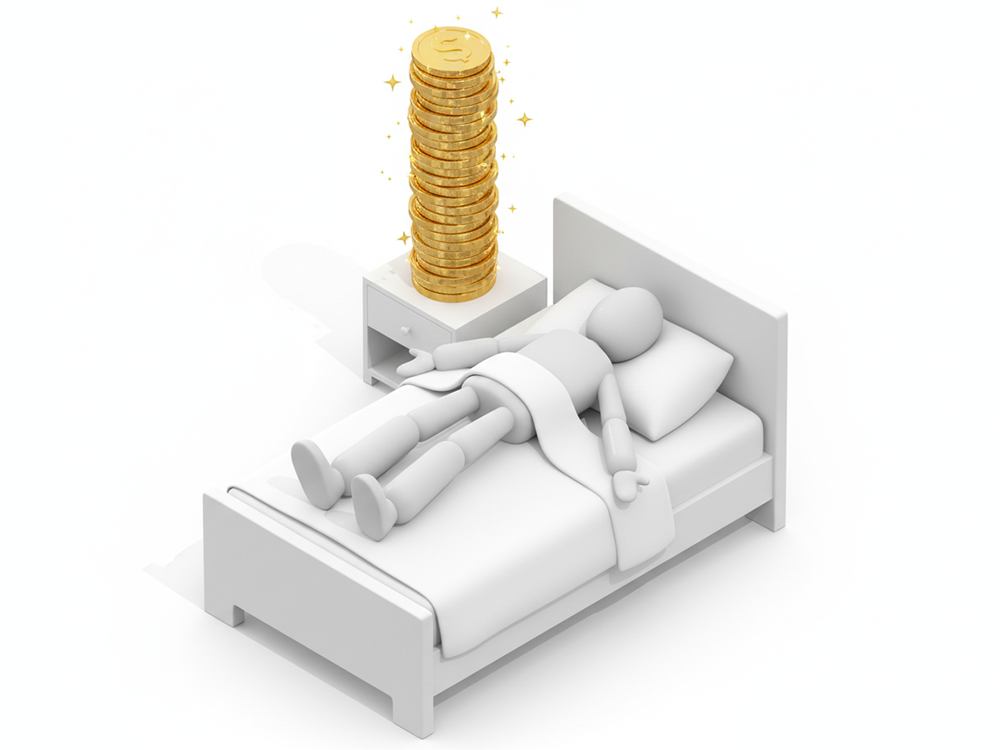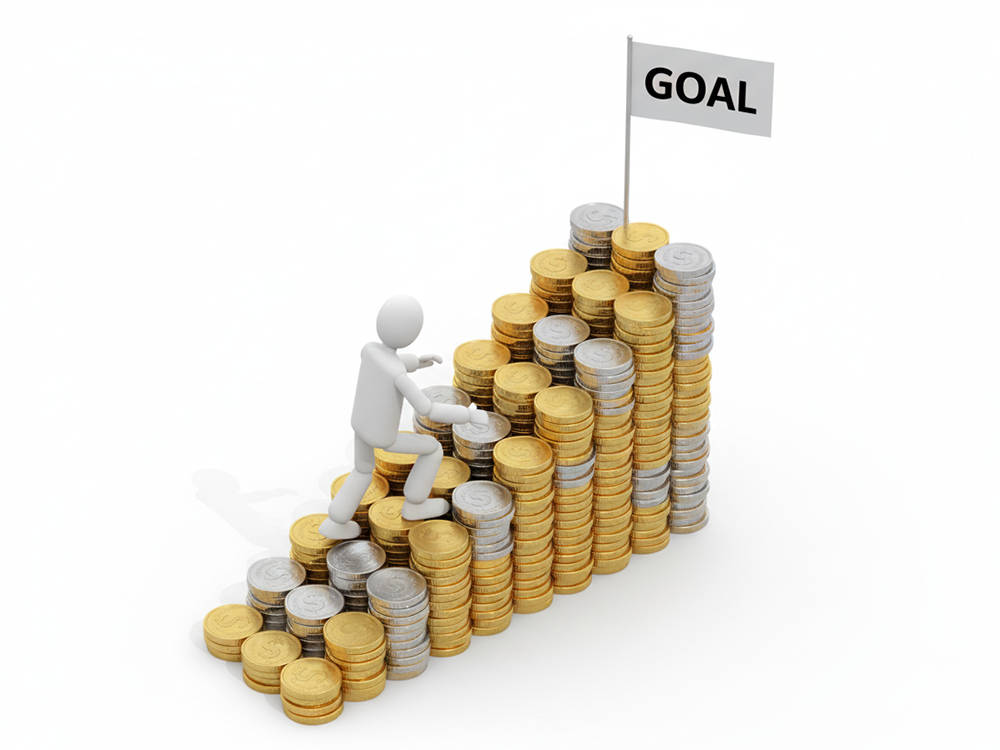 3D人物がコインでできた大きな球を転がし、さらに多くのコインを巻き込んでいく様子を描いた無料イラスト素材です。複利効果によって資産が雪だるま式に増えていくイメージや、コツコツと貯蓄を続ける重要性を表現しています。シンプルで分かりやすいデザインは、ビジネスシーンでのプレゼンテーション資料や、金融・投資に関するブログ作成の挿絵として最適です。背景が白く使いやすい画像ですので、デザイン制作の現場でもスムーズに取り入れられます。